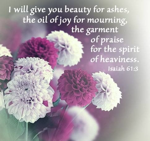 “Provide for those who grieve in Zion-to bestow on them a crown of beauty instead of ashes, the oil of joy instead of mourning, and a garment of praise instead of a spirit of despair.”